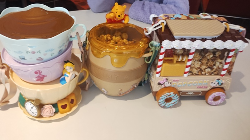 歩いているだけで目に入るポップコーン。味もケースも種類が多く、「つい欲しくなる」のがよく分かりました。