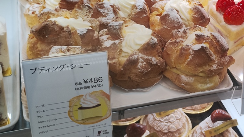 プリンと生クリームがたっぷり入った、「プディング・シュー」です。名前の通り、中身はカスタードクリームではなく、本物のプリン。ほろ苦いカラメル部分もあり、シュークリームというより「プリンデザート」に近い印象です。