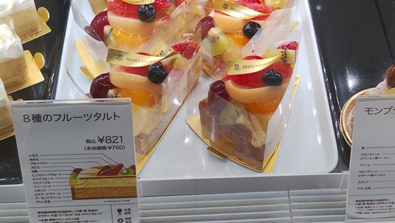 昨シーズンの写真と見比べてみると、全体の印象は変わらないものの、フルーツの大きさや高さが少しすっきりしたようにも感じました。それでも、華やかさやフルーツを楽しめる点は変わらず、見た目にも楽しいフルーツタルトです。