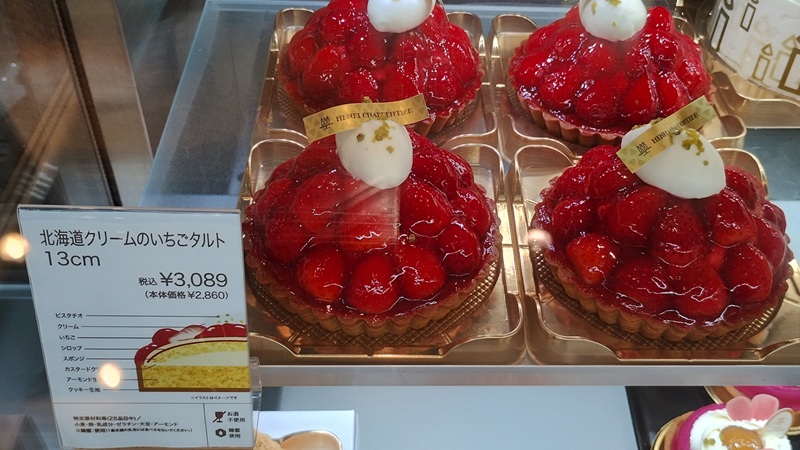 アンリ・シャルパンティエのショーケースは、ケーキの値段の横に「中身の構造」が書かれていて、とても分かりやすいのが好きなポイント。いちごタルトも、どんな層になっているのかが一目で分かり、ついじっくり見てしまいます。