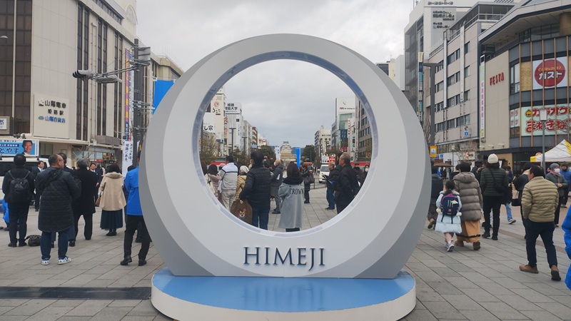 写真に人がたくさん写ってしまいましたが、「観光地・姫路駅前のリアルな一日」として、そのまま残すことにしました。