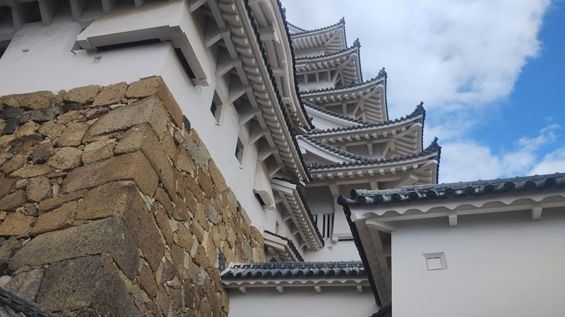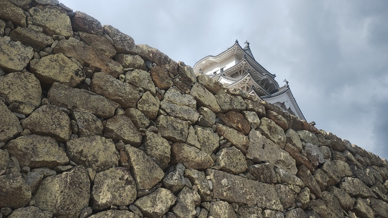 天守閣と石垣が並んで見える景色は、姫路城らしさが一番感じられる場所だと思います。白く美しい天守閣を支えているのが、この大きな石垣なのだと、改めて感じました。