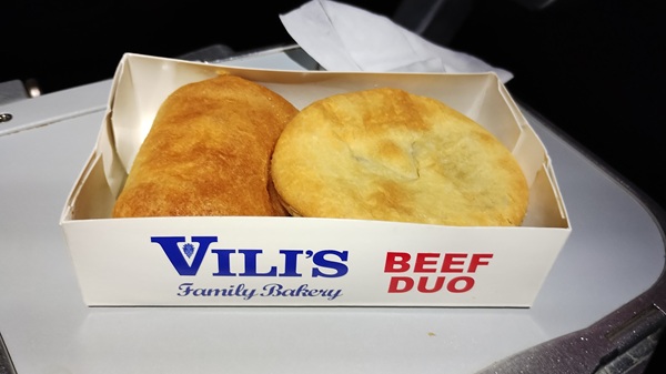 ▲ 2024年8月撮影。復路便、関空到着前の軽食です。レモンが頼んだミートパイだったと記憶しています。