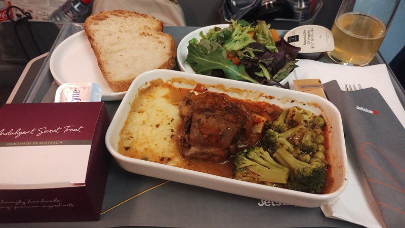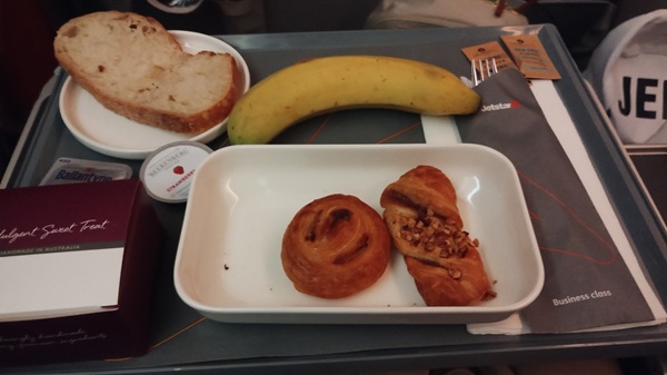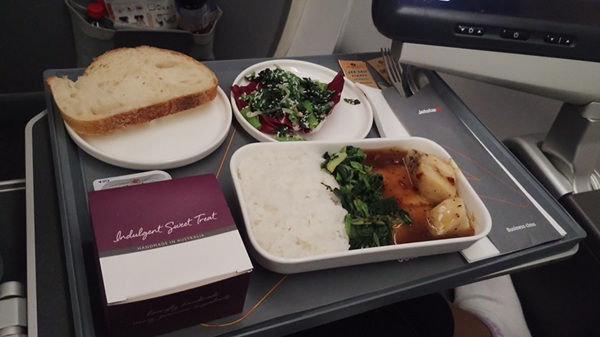 写真に残している通り、盛り付けや内容もエコノミーとは別物で、「これなら追加料金を払ってもいい」と感じられる体験でした。