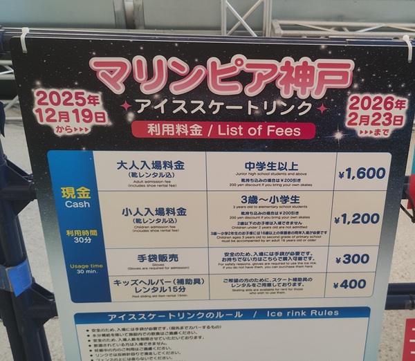 マリンピア神戸で、2026年2月23日(月・祝)までの期間限定で屋外スケートリンクがオープンしています。そのことは、以前マリンピア神戸に行ったときに知りました。でも、正直に言うと、スミレとレモンは今まで一度も行こうとしませんでした。