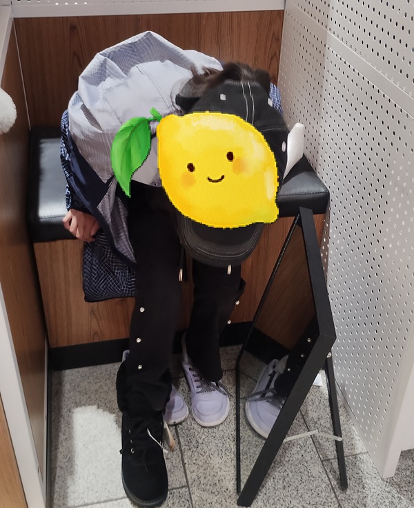 ▲ 試着用に椅子と鏡が置いてありました。周りには囲いがあって、試着しやすいです。