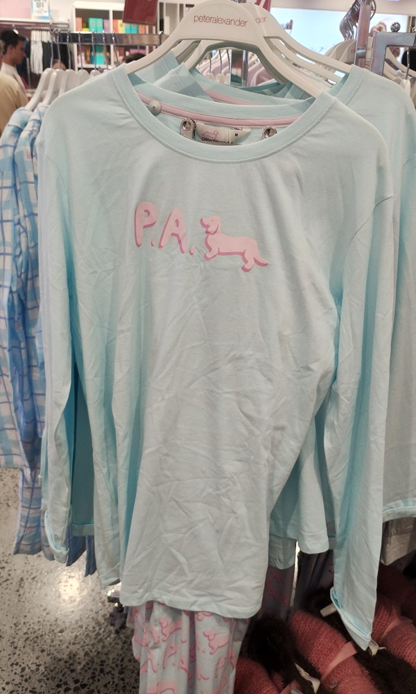 ハーバータウンのピーターアレクサンダーに入ってまず驚いたのが、スタッフさん全員がパジャマ姿で接客していること