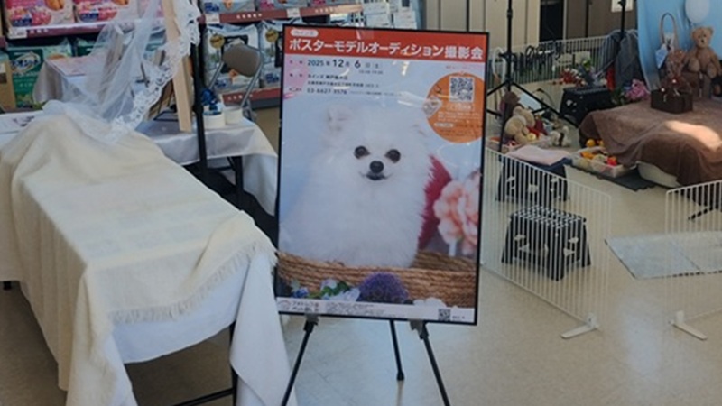 12月6日に行われた「ポスターモデルオーディション撮影会」の告知が店内に大きく掲示されていました。そしてそのポスターに使われていたモデルが、なんとプリンです。