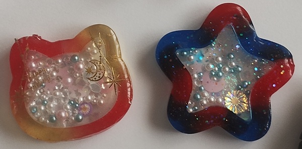 レジンの魅力のひとつは、やっぱり透明感。クリアのままでも、光に当たるとキラッと反射してとてもきれいです。